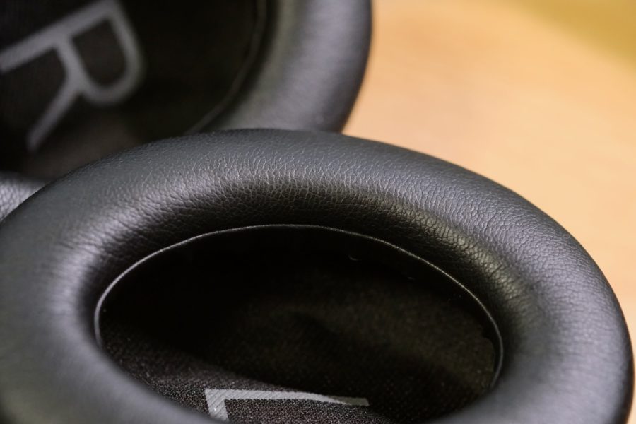 イヤーパッドはプロテインレザーとメモリーフォームです。内部に角度がついていて深さもあります。